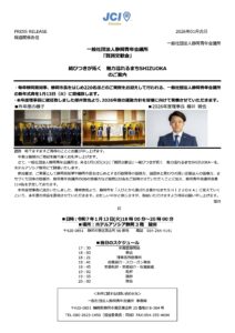 2026年度1月度第一例会 新年例会「賀詞交歓会」開催のお知らせ 2025年12月26日 2026年度1月度第一例会 新年例会「賀詞交歓会」開催のお知らせ結びつきが拓く 魅力溢れるまちSHIZUOKA 平素より当会議所の活動に格別のご理解とご支援を賜り、誠にありがとうございます。このたび、2026年度1月度第… 続きを読む Read More »